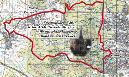 Nach fünf erfolgreichen Veranstaltungen werden wir nun gemeinsam die Rahmenbedingungen grundlegend verändern. Um auf den Wunsch vieler Teilnehmer einzugehen, verlängern wir die Strecke und steigern so die Fahrzeiten erheblich. Erstmalig bieten wir einen Rundkurs mit einer Streckenlänge von ca. 30km an. Der Verlauf wird wieder die alten historischen Streckenteile Wilhelmshöher Allee und Mulang beinhalten. Dieser Rundkurs wird eine Sonderprüfung und einen Slalom enthalten und ist an beiden Tagen insgesamt fünfmal zu absolvieren. Start und Ziel werden in den historischen Gutshof auf der Wilhelmshöher Allee verlegt. Dort war auch der Start in den 1920er Jahren. Der Gutshof mit seinem gepflasterten Innenhof bietet sich auch als Fahrerlager an.